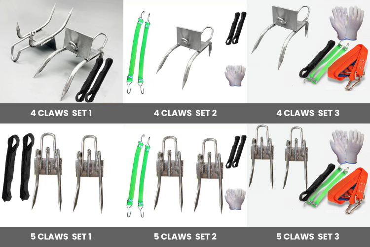 COMPREHENSIVE SET: Set 3 includes not only the cat claw shoes, but also elastic bands, straps, gloves, and a safety belt, providing you with a complete solution for your tree-climbing needs.